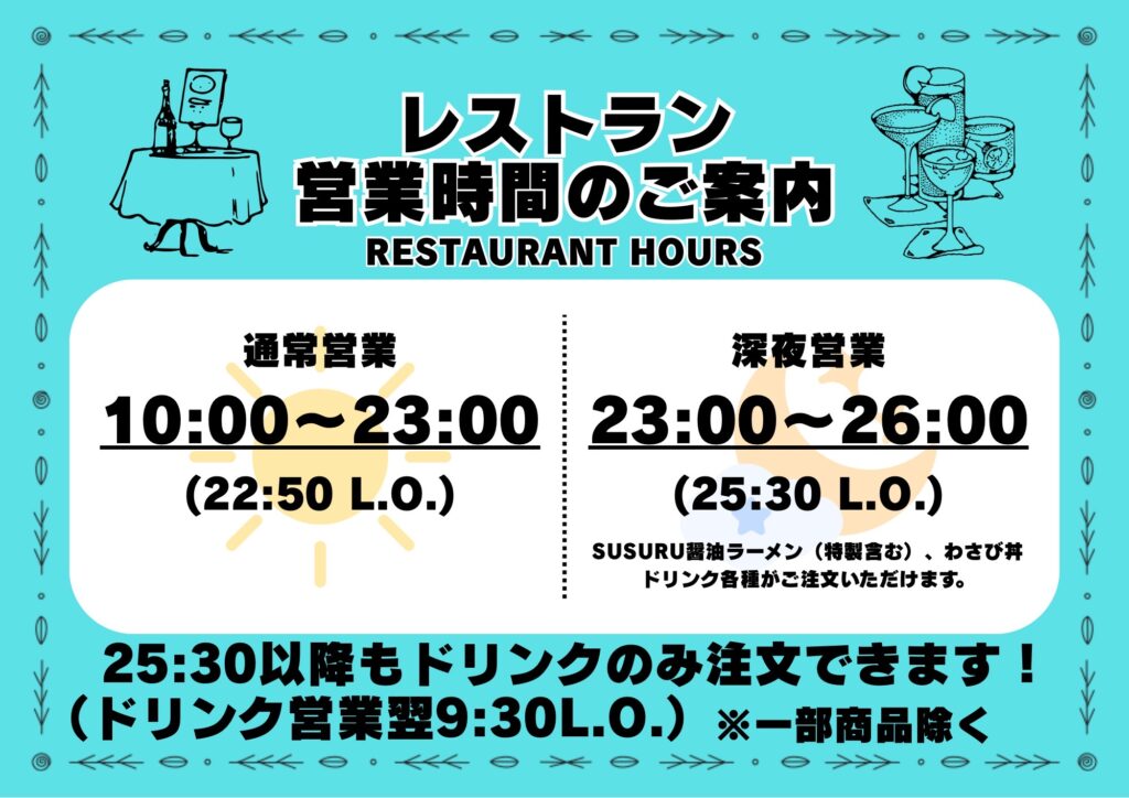 【地下レストラン営業時間のご案内】